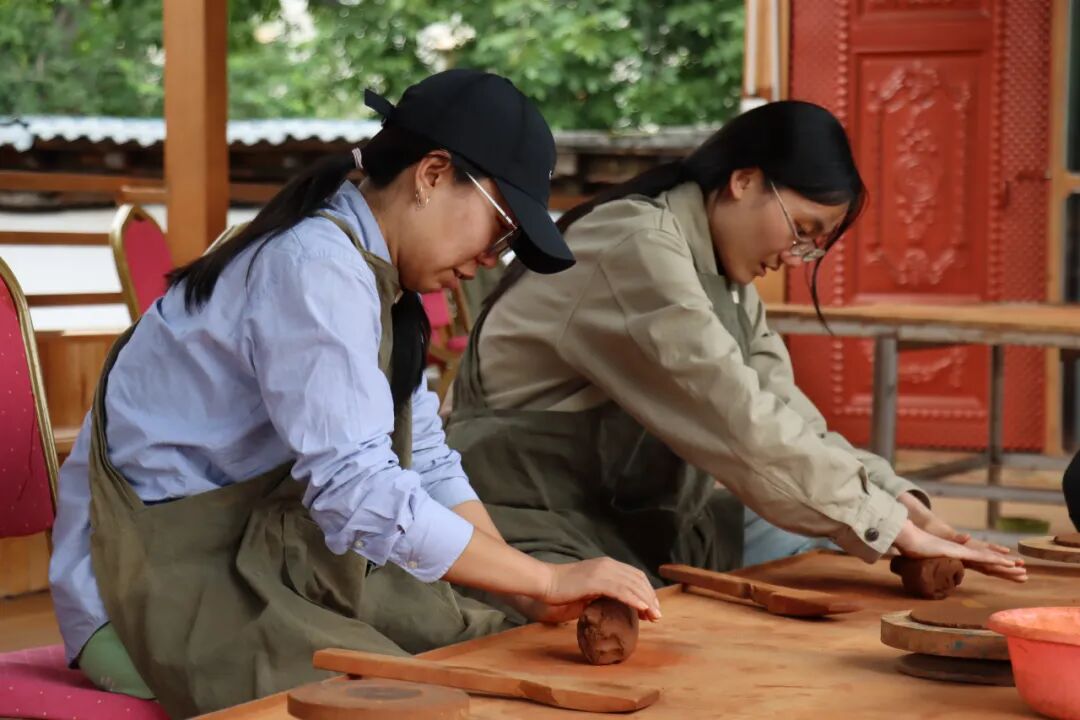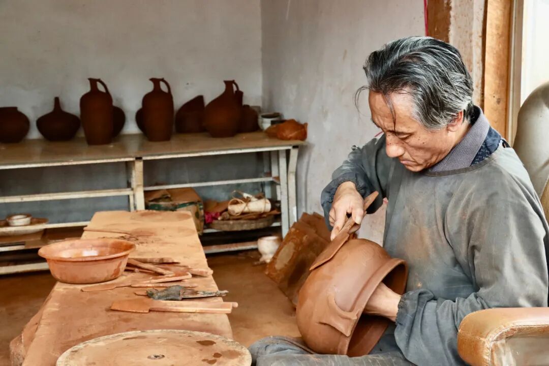 走进汤满村的一家黑陶作坊,致富带头人拉茸批初正指导农户揉泥、制坯,随着转盘飞速转动,一块普通的陶土逐渐成形。“以前黑陶只有3种原料,现在我们增加到6种,产品也有100多种了!”拉茸批初拿起一个带有藏族纹样的黑陶花瓶介绍:“从传统餐具到创意饰品,通过不断创新让古老技艺焕发新生。”