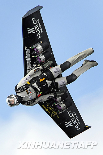 5月14日,瑞士人伊夫·罗西驾驶喷气式机翼飞过贝克斯上空。当日,伊夫·罗西驾驶自制的喷气式机翼飞行了5分钟,最高飞至2000多米的高空,并以每小时300公里的速度在阿尔卑斯山上空盘旋。据悉,罗西和他的赞助者为了研制这个飞行器花费了大量时间和30万瑞士法郎(28.5万美元)。 新华社/法新 ??? 5月14日,瑞士人伊夫·罗西驾驶喷气式机翼飞过贝克斯上空。当日,伊夫·罗西驾驶自制的喷气式机翼飞行了5分钟,最高飞至2000多米的高空,并以每小时300公里的速度在阿尔卑斯山上空盘旋。据悉,罗西和他的赞助者为了研制这个飞行器花费了大量时间和30万瑞士法郎(28.5万美元)。 新华社/法新 据英国《每日邮报》报道,“火箭人”维斯-罗西14日首次使用其设计的一种动力翼套装飞越了瑞士的阿尔卑斯山。 前瑞士战斗机飞行员罗西花了五年的时间来建造和完善动力翼套装,他昨天穿着这套动力翼套装跳离了一架小型飞机。当他从2250米的飞机上跳下时,他展开了长达3米的动力翼,动力翼被绑在他的身后。当从自由落体状态转为滑行状态后,他启动了四个发动机,这使他的飞行速度加速至每小时304公里。他在爬升至780米后再次向地面俯冲,在身后留下一串特效烟雾。 罗西在向观众挥手之后将动力翼倾斜,作了一个翻转动作后再次改平,完成了一个完美的360度翻滚。他在日内瓦湖边降落后称:“这套动力翼就像是我的第二皮肤。如果我转向左边,我向左飞去,如果我转向右边,我向右飞去。” 48岁的罗西称,在完成飞越阿尔卑斯山的壮举后,他计划今年晚些时候飞越英吉利海峡,他还计划飞过美国的大峡谷。为了完成这些计划,他必须得安装更强的发动机以获得更大的自由度。目前的四台飞机发动机可提供800磅的推力,这足于以使重1101磅的可折叠翼和罗西以每分钟60米的速度爬升。罗西称:“就体力而言,这绝对不构成压力。这就像是骑在摩托车上,但是我要放松,因为如果我有任何紧张情绪的话,我就开始晃动。如果发生不测,我可以按黄色手柄来丢掉动力翼并打开备用伞。” 罗西称,他的这种单人飞行模式到目前为止还只是属于少数人,相关的费用和努力成本非常高,还无法实现商业化。到目前为止,罗西和他的赞助人已花了123000英镑,用了难以计数的时间来建造这一装置。但是他认为,有经验的跳伞降爱好者终有一天会获得类似的动力翼装置。不过,他们可能不得不放弃欣赏阿尔卑斯山风景的机会了。罗西说:“我的注意力高度集中,我真的无法欣赏风景。”(关新) |