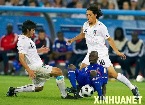 6月17日,法国队球员克·马克莱莱(下)在比赛中护球。当日,意大利队在瑞士苏黎世举行的欧锦赛C组比赛中以2比0战胜法国队,晋级八强。 新华社记者徐金泉摄 ![]() 6月17日,意大利队守门员吉·布冯(左三)与队友庆祝胜利。当日,意大利队在瑞士苏黎世举行的欧锦赛C组比赛中以2比0战胜法国队,晋级八强。 新华社记者廖宇杰摄 ![]() 6月17日,主裁判出示红牌将法国队球员埃·阿比达尔(右二)罚出场外。当日,法国队在瑞士苏黎世举行的欧锦赛C组比赛中迎战意大利队。 新华社记者廖宇杰摄 |