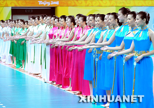 7月20日,志愿者展示颁奖仪式标准流程。 当日,北京奥运会、残奥会体育展示与颁奖仪式工作汇报暨誓师动员大会在北京理工大学体育馆举行,集中汇报展示了北京奥运会、残奥会颁奖仪式服装及颁奖仪式标准流程、竞技拉拉操表演、民族民间舞蹈表演和吉祥物表演等项目。 新华社记者罗晓光摄 7月20日,志愿者们在进行北京奥运会、残奥会颁奖仪式标准流程展示。新华社记者杨磊摄 7月20日,志愿者们在进行北京奥运会、残奥会颁奖仪式标准流程展示。新华社记者杨磊摄 7月20日,志愿者们在进行北京奥运会、残奥会颁奖仪式服装展示。新华社记者杨磊摄 7月20日,志愿者们在进行民族民间舞蹈表演。新华社记者杨磊摄 7月20日,志愿者们在进行民族民间舞蹈表演。新华社记者杨磊摄