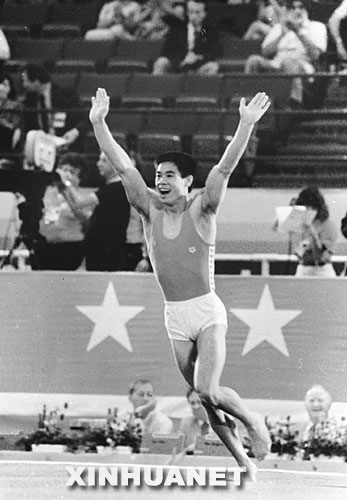图为楼云在比赛中。 1984年8月4日,楼云获第23届洛杉矶奥运会男子跳马金牌。新华社发 第13枚金牌