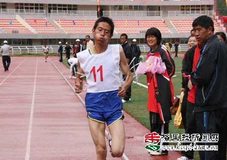 男子5000米:来自香格里拉县代表队的赖文以19分18秒的成绩冲过终点