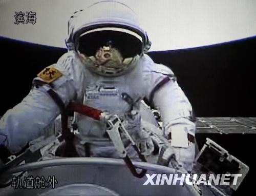9月27日,执行神舟七号载人航天飞行出舱活动任务的航天员翟志刚正在出舱活动(摄于北京航天飞行控制中心大屏幕)。新华社记者查春明摄 9月27日,执行神舟七号载人航天飞行出舱活动任务的航天员翟志刚正在出舱(摄于北京航天飞行控制中心大屏幕)。新华社记者查春明摄 9月27日,执行神舟七号载人航天飞行出舱活动任务的航天员翟志刚正在出舱(摄于北京航天飞行控制中心大屏幕)。新华社记者查春明摄 |
