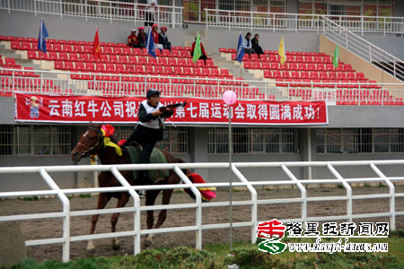 10月2日,舞凤山下枪声阵阵,一群骑着高头大马的藏民呼啸而来,在移动的马背上击中一个又一个目标,赢得了前来助威村民的一阵阵的掌声。 泥泞湿滑的跑道、细雨绵绵的天气,男子组马上射击、射箭比赛在香格里拉体育中心拉开战幕,男子组马上射击比赛共有9名选手参赛,经过2轮的比赛,电力矿业队的陈光轻松取得冠军,香格里拉县的春批获得亚军,德钦代表队的德列位列第三;男子马上射箭赛的金牌由香格里拉县代表队的吹批汪吉摘走,德钦代表队的旺堆取得亚军,香格里拉县的春批获得铜牌。 |