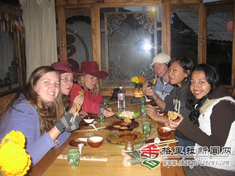 ![]() 黄金周期间古城内每天都有上千游客涌入。 黄金周闹热了古城独克宗,独克宗特色餐饮、独特的客栈、多样的文化吸引了上千的游客穿梭在独克宗古城,千年古城成为了游客们吃、玩、住的天堂,带给了游客不一样的感受和惊喜。 特色餐饮任君品 在黄金周期间,众多的游客选择到独克宗古城内品尝特色餐饮。记者了解到,古城内甸腊卡、火塘边边、阿若康巴等十多家餐饮店就提供藏式火锅、牛肉干巴、土锅鸡等特色餐饮,而各家餐馆也装修也别具特色。黄金周期间古城内每天都有上千游客涌入,十多家特色餐饮营业额均比平时有所提高。在古城内阿若康巴餐馆里,记者看到,除了外地的游客就餐外,不少外国人正在津津有味地品尝着藏餐。据阿若康巴的老板介绍,阿若康巴除了经营香格里拉的特色藏餐,还有印度等特色餐,今年黄金周期间餐馆的营业额比平时提高了50%左右,其中还有不少是预定的。吃着独特的饮食,外国人纷纷伸出拇指夸赞藏餐的美味。 古城客栈受青睐 古城内藏式特色浓郁的客栈大大小小几百家在黄金周期间爆满。“金海”客栈十月一日开业以来,客栈价位在200——400元的12个客房全满。而据上游生活客栈的老板介绍,临近黄金周,客栈内价位在300多元的高中档18间客房在网上就早早被全部预定。在独克宗古城内,不少客栈保存了藏式建筑风格,来自重庆的张先生就对藏式住房上的“阳台”很感兴趣,他们一家正忙着将帐篷撑在“阳台”上,准备在那里度过难忘的一夜。 文化的乐园 古城内多样的文化为游客们献上了精彩纷呈的视听盛宴,每天都吸引了不少游人。古城四方街上许多游人加入了歌舞的海洋之中,有的还和身着藏装的当地居民一起合影;许多游客慕名来到独克宗古城内的热西·藏乐(香格里拉民间音乐保护协会)欣赏民间文化艺人的演出;金海客栈则邀请了中央电视台流行音乐全国冠军兄弟组合在客栈内进行一个多月的演出。(记者 和金莲) ![]() 来自重庆的张先生在藏式住房上的“阳台”上将帐篷撑上,度过了难忘的一夜。 ![]() 在香格里拉古城独克宗品尝特色藏餐美味。