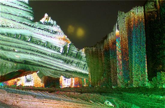 7.放大10倍的抗癌药丝裂霉素 ![]() 放大10倍的抗癌药丝裂霉素 作者:玛格丽特·奥切斯莉(Margaret Oechsli) 作品名称:抗癌药丝裂霉素(10倍) 工作单位:犹太人医院心肺研究所 拍摄地点:美国肯塔基州路易斯维尔市 所用技术:偏振光 8.放大13倍的结晶混合物 ?放大13倍的结晶混合物 作者:约翰·哈特(John Hart) 作品名称:resorcinal、亚甲基蓝、硫磺和的结晶混合物(13倍) 工作单位:美国科罗拉多大学大气与海洋科学学系 拍摄地点:美国科罗拉多州波尔得 所用技术:透射偏振光 |