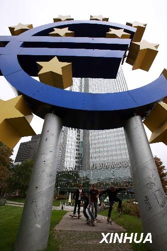 10月15日,一群男孩在德国法兰克福欧洲中央银行大楼前的欧元标志下玩滑板。当天,代表欧洲雇主利益的欧洲商会呼吁欧洲央行考虑采取降息等所有可能手段帮助欧洲经济走出目前的困境。新华社记者罗欢欢摄 欧洲央行、英国央行和瑞士央行6日宣布再次降息,以刺激经济增长。与此同时,各国继续出台新措施应对国际金融危机带来的不利影响。 欧洲央行6日宣布再次下调主导利率50个基点,由3.75%降至3.25%,以期扭转欧洲经济的颓势。10月8日,在西方6大央行采取的联合降息行动中,欧洲央行已将欧元区主导利率从4.25%下调至3.75%。至此,欧洲央行的降息幅度已达1个百分点,这是自1998年欧洲央行成立以来最大幅度的降息举动。>>详细