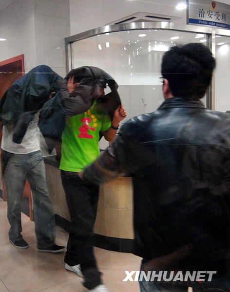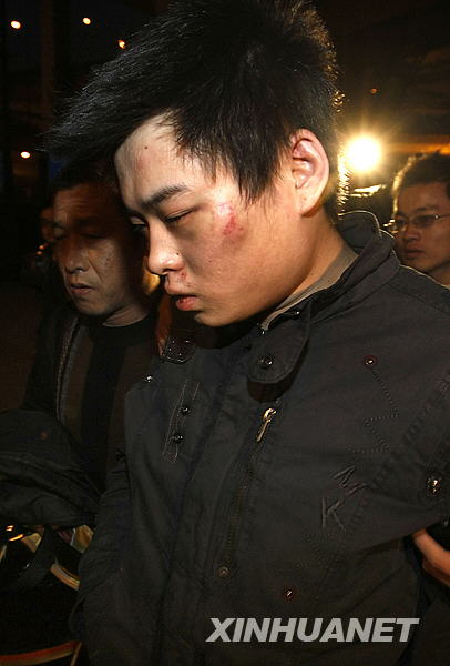 12月1日晚,打人者毛剑卿(穿绿衣者)等人在派出所接受调查。 12月2日凌晨1时30分许,上海申花足球队两名打人球员毛剑卿、刘寅涛被警方拘留。12月1日凌晨5时许,上海申花队员毛剑卿等人在上海长乐路附近一家餐馆内因与在邻座用餐的徐先生发生口角,对其进行群殴。警方接警后按照徐先生提供的车牌号码拦下已离开现场的打人者。在进行了调查后,警方对打人者执行拘留。新华社发