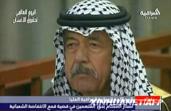 12月2日,伊拉克一特别法庭判处前政权高官、绰号“化学阿里”的阿里·哈桑·马吉德死刑。这是他第二次被判处死刑。这是马吉德在伊拉克首都巴格达接受庭审的资料照片(2007年1月8日摄)。新华社/法新