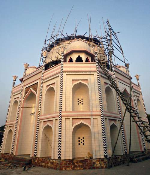 “山寨版”泰姬陵使用真泰姬陵一样的建筑材料。 孟加拉国一位富有的电影导演莫尼花了五年时间兴建了一座复制的印度名胜泰姬陵,希望一圆国内贫穷同胞想到该名胜一游之梦。 据香港《大公报》报道,这幢和真泰姬陵大小完全一样的建筑物,花了5800万美元,耗费五年时间建成。其兴建的时间和人力都远远不及真泰姬陵多。 导演莫尼解释:“到泰姬陵看看是每一个人的梦想。但在孟加拉国,能成行的人实在寥寥可数,因为对他们来说,走一趟实在太贵了。” 复制的泰姬陵位于孟加拉国国首都达卡东北方30公里。莫尼说,他希望自己监督兴建的复制泰姬陵,对国内外游客的吸引力会和真的泰姬陵一样大。 国际旅游业并非孟加拉国国的主要收入来源。据联合国专门机构世界旅游组织统计,前往亚太地区的游客只有百分之○点一停留当地。 莫尼第一次到访泰姬陵是在1980年。其后为了达成将它复制的梦想,他特地再访六次之多。 莫尼聘用专业建筑师,送他们到印度,量度真泰姬陵的尺寸,再带六名印度技术人员到他的工地协助施工。 工程最后在2003年展开,预期在本月(2008年12月)完成。到时这幢新的泰姬陵就会向公众敞开大门。 莫尼从意大利进口大理石和花岗岩,从比利时进口钻石,又用了160公斤青铜建造穹顶。 莫尼说:“我所用的大理石与花岗岩和真泰姬陵一样。我们动用了机械(协助施工),因此建造的时间(比真泰姬陵)少得多。否则如果我们需要20年建成,就得聘用二万二千名工人才行。” 泰姬陵在十七世纪耗时20年兴建,是莫卧儿王朝第五代皇帝沙贾汗为纪念他心爱的第二任妻子泰姬.玛哈尔而建。泰姬.玛哈尔在分娩期间去世。 在孟加拉国国电影业名成利就的莫尼拍了20部电影。他在达卡拥有一间电影院和一间三星级酒店。他说:“我们(即印度和孟加拉国)在分割前都接受过沙贾汗的管治,因此我们所有人都熟悉泰姬陵的故事。但亲眼看过泰姬陵的孟加拉国国人寥寥可数。沙贾汗因为爱妻子而兴建泰姬陵。我就因为爱沙贾汗而兴建我的泰姬陵。” |