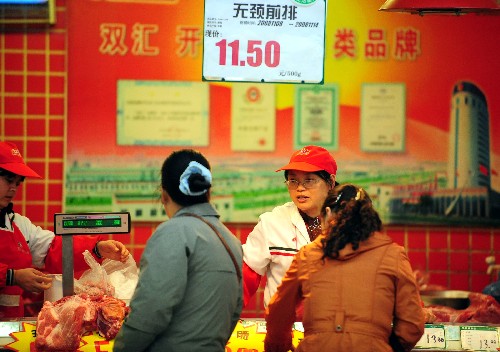 11月11日,市民在安徽滁州一家超市购买猪肉。 国家统计局11日发布数据显示,10月中国居民消费价格总水平(CPI)同比上涨4.0%,涨幅比上月回落0.6个百分点。这是今年5月以来,中国CPI同比涨幅连续第六个月回落。从更能反映价格变动情况的环比数据看,10月CPI环比(比上月)下降0.3%,其中食品价格环比下降0.9%。 新华社记者 陈晔华 摄