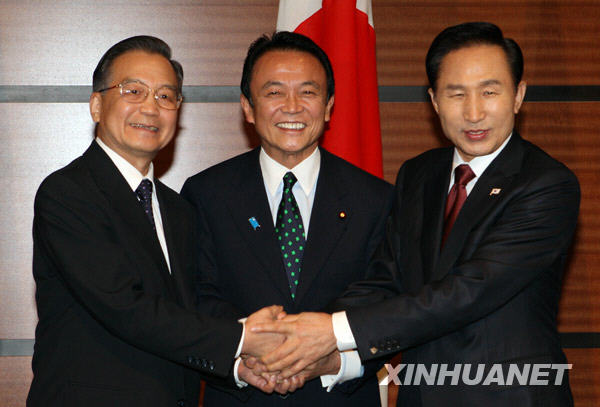12月13日,中日韩领导人会议在日本福冈举行。这是中国国务院总理温家宝、日本首相麻生太郎、韩国总统李明博在会议开始前合影。新华社记者 姚大伟 摄 新华网日本福冈12月13日电(记者刘东凯、冮冶)中国、日本、韩国领导人会议13日在日本福冈举行。中国国务院总理温家宝、日本首相麻生太郎和韩国总统李明博出席会议。会议由麻生太郎主持。三国领导人积极评价三国合作的进展,确定了今后合作方向,提出了新的合作倡议,并就应对国际金融危机,以及共同关心的地区和国际问题交换了意见,达成重要共识。 温家宝在发言中说,中日韩合作已走过9年历程,取得了积极进展。三国政治互信日益加深,各项合作机制更加健全,务实合作规模持续扩大,地区和国际多边合作显著加强。中日韩合作为三国人民带来了实实在在的利益,也为本地区的稳定与发展作出了贡献。中方对三国合作的前景充满信心。温家宝表示,本次会议确立了三国伙伴关系,并将三国领导人单独举行会议机制化,标志着中日韩合作进入了新的发展阶段。中日韩应从促进共同发展、维护地区稳定、建立和谐亚洲的战略高度加强合作。为此,中方提出以下倡议: 第一,加强政策沟通与协调。明年在华举办第十次中日韩领导人会议、外长会议及外交高官磋商;搞好明年中日韩合作十周年庆祝活动,对三国合作未来作出长远战略规划。 第二,密切经贸联系。继续就中日韩自贸区建设进行联合研究;尽早达成一个平衡、务实、共赢的投资协议,提高相互投资合作水平;推动建立三国间物流体系。开展海关合作,保障和便利贸易往来;探讨建立三国工业合作磋商机制。 第三,扩大财金合作。探讨扩大三国间双边货币互换规模,加强三国在东盟与中日韩(10+3)金融领域的合作,加快“清迈倡议”多边化进程,尽快建立区域外汇储备库,推进亚洲债券市场建议。加强三国央行间合作。 第四,充实社会领域的合作。加强议会、教育、文化、旅游、防灾减灾、人口老龄化和家庭保健、媒体、学术等领域交流,促进地方和民间往来,探讨建立三国青年文化交流机制。 第五,推进可持续发展领域的合作。在能源、节能减排、环境保护、气候变化等领域的交流合作。 第六,加强周边区域合作。继续支持东盟一体化建设,积极参与10+3合作,推动东亚峰会发挥战略论坛作用,促进东亚区域合作。就朝鲜半岛核问题等重大国际和地区问题加强沟通协调。 温家宝阐述了中方关于国际金融危机问题的立场主张。他强调,中日韩应携起手来,在东亚抗击危机斗争中发挥核心作用。要利用三国经贸、财政部长、央行行长会议等机制,加强宏观经济政策对话与协调,探讨加强财政和金融合作,加强三国间货币合作,尽快就“清迈倡议”多边化主要要素达成一致。 关于朝鲜半岛核问题,温家宝说,六方会谈正处在承前启后的关键时刻。有关各方应维护和推动六方会谈的势头,推进半岛无核化进程,致力于相互关系正常化,共同促进东北亚地区的持久和平与稳定。中方将一如既往为此发挥建设性作用。 麻生太郎和李明博表示,日韩中都是本地区重要国家,三国应立足现实、面向未来,本着互利互惠、尊重多样文化的原则,不断推进在广泛领域的务实合作,加强在重大问题上的沟通协调,积极推动区域合作,为东亚的和平、稳定与繁荣作出更大贡献。 麻生太郎和李明博表示,国际金融危机给亚洲带来严峻挑战,日韩中应采取措施扩大本国内需,同时,加强协调合作,共同提高抵御金融风险的能力,保持三国及本地区金融稳定和经济增长。三国要采取切实措施促进贸易投资便利化,推动多哈回合谈判,防止贸易保护主义。 麻生太郎和李明博对中方为推动六方会谈发挥的重要作用予以赞赏,他们表示,六方会谈是实现半岛无核化的有效途径,日韩将与中方继续保持沟通合作,保持信心,克服困难,推动六方会谈取得新进展。 三国领导人还就东亚合作、非洲发展、环境和气候变化、联合国改革等问题交换了意见,同意就重大国际和地区问题保持沟通与磋商。 会议结束后,三国领导人共同签署了《三国伙伴关系联合声明》(全文另发),并发表了《国际金融和经济问题的联合声明》(全文另发)、《三国灾害管理联合声明》和《中日韩合作行动计划》。中日韩领导人还共同会见了三国青少年代表。 |