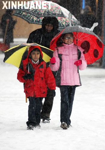 12月19日,行人走在美国纽约街头。当日,纽约遭遇暴风雪袭击,市区降雪约13厘米,导致一些学校停课,部分道路封闭,数百架航班取消。连日来,美国从中西部到东北部遭遇大范围暴风雪袭击。 新华社记者 侯俊 摄