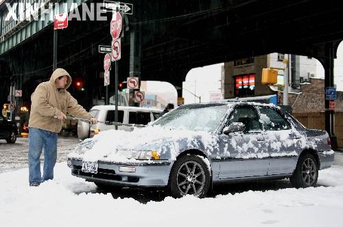 12月19日,美国纽约的一位司机清理车上的积雪。美国总统布什当日宣布,美国政府将提供紧急贷款以救援陷入困境的美国汽车业。据悉,这项贷款总计174亿美元,是从总额为7000亿美元的金融救援方案中拨出的。作为条件,接受救援的美国汽车公司必须在3个月内拿出以实现自立为目标的改革计划。 新华社记者 侯俊 摄 |