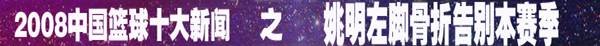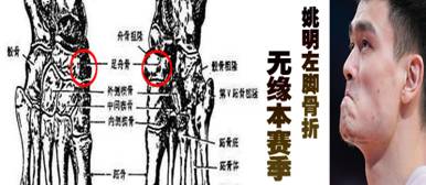 姚明因左脚骨折将告别本赛季 新华网华盛顿2月26日电(记者梁金雄)火箭队26日对外宣布,中锋姚明因左脚脚踝骨折,将告别本赛季剩余的全部比赛。这对目前12连胜的火箭队来说如同迎头被浇了一盆冷水。24日,火箭队在主场战胜公牛队迎来12连胜的比赛中,姚明“表现不佳”仅得12分。赛后他在更衣室把左脚放进了一个冷敷箱,说自己的脚踝有点不舒服,所以场上移动不太灵活。 姚明再次骨折谁之过 疑似代言球鞋保护不力 北京时间2月27日,据《休斯顿纪事报》报道,由于左脚应力性骨折,火箭中锋姚明将缺席本赛季剩余的比赛。在当地时间周一的训练之后,姚明前往赫尔曼纪念医院接受了检查,随后姚明与火箭队医汤姆克兰顿讨论了伤情。火箭将在今天和奇才的比赛前公布诊断结果。