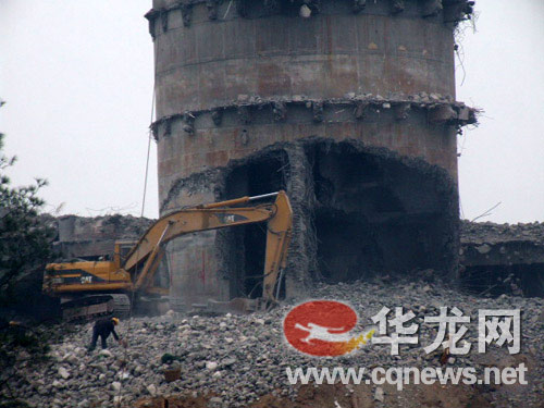 拆除现场 5日12:46分,随着一声巨响和一阵地动山摇的震动,昔日设计总投资3500余万元、建筑面积近5000平方米、主塔高92米、连同塔尖共135米、顶部有旋转观光厅、能俯瞰万州城全景、有万州形象工程之称的“三峡明珠观光塔”,轰然“谢幕”。 “三峡明珠观光塔”地成功拆除,标志着被誉为“三峡百万移民标志性”建筑的形象工程,将在人们多年的期盼中,结束了其“光荣”的历史使命。 拆除施工现场 设有两道警示监督岗 5日11时40分,记者接到一位读者电话报料称:“三峡明珠观光塔”将在12时至14时拆除。 记者12时26分赶到位于万州区九池境内的戴家岩风景区内,在距离“三峡明珠观光塔”约400米的地方,一根枯树横在公路中间,并竖着一块“拆迁工地,闲人免进”的警示牌。 记者跨过警示牌,绕过现场监督拆除的施工人员,再顺着小路躲过设在公路下方的监督施工人员,抄近路来到“金龙花园”大门前,只见“三峡明珠观光塔”仍然耸立在戴家岩边缘。 在“三峡明珠观光塔”所处戴家岩山体,呈半岛形状,岩下的东、南、西边均是“重庆三峡学院”或城区,唯有“三峡明珠观光塔”北边连着后边的山体,在距“三峡明珠观光塔”约80米远,是一条通往万州区金龙花园的公路,“三峡明珠观光塔”西边不到50米远,是一条上千伏的高压输电线路。 记者在“金龙花园”大门前的一高处观察到,高高耸立的“三峡明珠观光塔”底部已经被挖掘机“啃”掉一半以上,一根粗粗的钢绳从塔顶二楼窗口直接拉下,与停靠在约100余米的一辆汽车牵手。一台黄色的挖掘机正在南侧不停的作业,很远处便能听到“隆隆”声响。附近聚集了数十名市民观看。 记者直击塔倒 5秒钟内塔倒烟尘闭天 一位在附近观看的市民看到记者模样特殊,便悄悄地告诉记者称,拆除过程禁止记者采访,提醒记者小心被“赶出”现场。 12时36分,记者冒雨找准一处能清晰地观察“三峡明珠观光塔”拆除现场的“藏”身之处。静静地观看着整个拆除过程。 12时46分,当记者听到象鞭炮爆炸的声音传来时,抬头发现“三峡明珠观光塔”已经开始向北边倾斜,当记者赶快拿起相机,准备拍摄记录下这令许多市民难忘的一瞬间时,“三峡明珠观光塔”便以令人意想不到的速度,急剧朝北边倒下。 “轰”地一声巨响,高达12层的“三峡明珠观光塔”轰然倒地,巨大的尘土,顿时将整个戴家岩全部吞没,将整戴家岩山体“封闭”,现场观看的市民,根本无法看清楚倒地的“三峡明珠观光塔”是什么样子。数百米外,便能感觉到强烈的震感。 “三峡明珠观光塔” 谢幕的全部过程,不超过5秒钟。 明珠坠落倒地 一根钢筋绳绊倒万吨巨塔 “三峡明珠观光塔”拆除倒地后,腾起巨大的尘土在将近10分钟内才漫漫散开。 很多远距离观看的市民,迅速涌向现场。记者在现场看到,巨大的“三峡明珠观光塔”倒地后,整个塔体从其建筑基础处,延伸到了山体下面的附属建筑处,原来修建时搭建的钢结构塔机,其前臂摔在了公路外沿底部。呈圆形的顶端5楼在倒地时,被摔成了“扁”状,原来被市民形容成“指南针”的塔机,也在“三峡明珠观光塔”倒地时,被摔成了数段。 倒地后的“三峡明珠观光塔”,其底部的钢筋记者在100余米外,尚能清楚的看到,全部被巨大的塔身倒地时扳断,整个塔身一半截呈圆筒状,半截呈“扁”形地躺地地上。 记者在离“三峡明珠观光塔”倒地不远地公路上看到,一辆“渝AF2210”的东风货车,满载着一车河沙停在那里,几名工人见塔已成功倒地,便忙着收取套在汽车上的钢绳。 据现场一位施工人员称,“三峡明珠观光塔”塔身就有近万吨。就是这样一座近万吨的庞然大物,竟然被一根直径约3公分的钢丝绳给绊倒了。 记者在返回的路途上,许多市民闻听到“三峡明珠观光塔”倒地的声响后,潮水般地涌向现场观看,也有不少市民正用电话在向朋友们报告这一既令人失望,又令人感动的时刻。 新闻资料: 三峡明珠观塔 形象工程被突然叫停 5日,“三峡明珠观光塔”在历时17天的拆除施工后,被成功拆除倒地。这是“三峡明珠观光塔”继2005年4月17日被突然叫停之后,在人们的争议声中度过了漫长的三年半时间后,悲壮谢幕。 据了解,“三峡明珠观光塔” 选址于万州的“城市阳台”——海拔495米的戴家岩风景区制高点松林包,距万州主城区约4公里,于2004年3月开工建设。由万州区原龙宝管委会投资2500余万元建设,其设计建筑面积近5000平方米,主塔高92米,连同塔尖共135米,顶部有旋转观光厅,2005年春节前如期竣工后,能俯瞰万州城全景。 据重庆市渝东经济技术开发区官方网站招商栏目2008年8月27日介绍称,“三峡明珠观光塔” 地处重庆市渝东经济技术开发区核心——金龙经济区内,规划占地面积26亩,塔高90余米,计划总投资3500万元,于2004年7月开工建设,目前完成塔高30多米及部分附属设施建设。 据相关资料显示,“三峡明珠观光塔”由万州区龙宝管委会投资建设。于2004年3月开工建设后,于2005年4月17日被突然叫停,整个前期工程耗资1000万余元。停工后的“三峡明珠观光塔”,被当地市民称之为“烂尾楼”。 2008年12月19日,在“三峡明珠观光塔”停工三年半之后,施工队伍再次开进现场。但施工队伍这次进场,不是继续修建,而是实施拆除这座有“烂尾楼”之称的建筑。(来源:华龙网) |