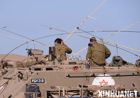 在加沙地带北部边境的一处营地,以军士兵在装甲车上待命 据路透社报道,哈马斯官员称,加沙战事持续13天以来已致使765人死亡,其中34%是儿童。另有数据显示至少3120人受伤。 以色列总理奥尔默特8日暗示,以政府可能命令国防军扩大目前在加沙地带展开的军事攻势,以实现既定的行动目标。 当天,以军战机也持续对加沙地带多个目标进行轰炸,地面部队在多个地点与巴勒斯坦武装人员发生交火。在8日的军事行动中共有3名以军士兵被巴武装人员打死。(来源:中国新闻网) |