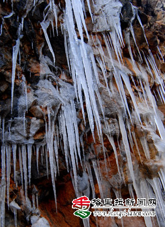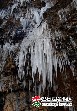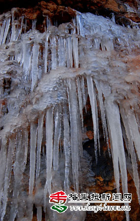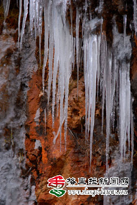 入冬以来,香格里拉随处可见奇特的冰凌奇观:一条条巨大的冰凌,从悬崖口凌空一垂而下,长约十余米。凌冻天气,让香格里拉的冬天景象更美更有味道,山中植物各种造型奇特的冰凌让游人大饱眼福。(记者 余富全 摄)