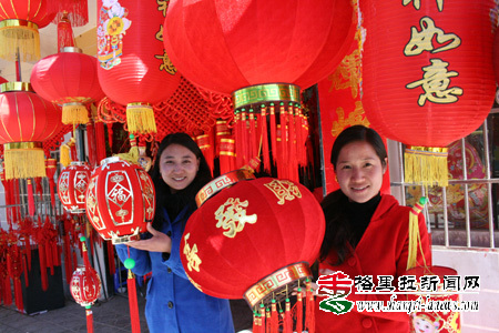 1月16日,两名正在选购年货的群众高兴地举起灯笼以示吉祥。春节将至,香格里拉年货市场红火,市民高高兴兴地选购心仪的年货迎接新春佳节。