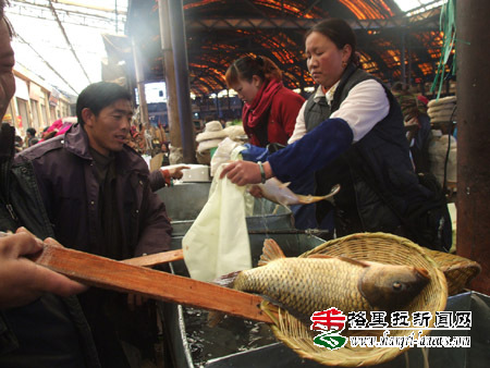 改革开放以来,迪庆加大基础设施建设,飞机连通世界、公路四通八达,大理新鲜蔬菜、东北大米、山东水果、广东海鲜便捷地运到迪庆高原,丰富了农牧民的米袋子和菜篮子。(记者 杨勇 杨翠海/摄影报道) |