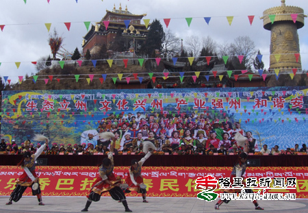 1月27日一早,独克宗古城月光广场上空彩旗飘扬,大龟山脚下祝福声声,龙腾狮跃。在一片瑞气祥和的气氛中,“欢乐香巴拉”2009年迎春民俗文化活动拉开了序幕。