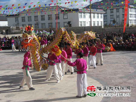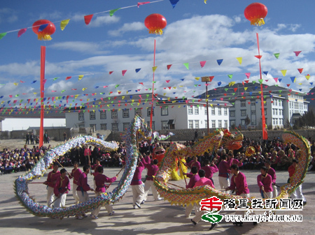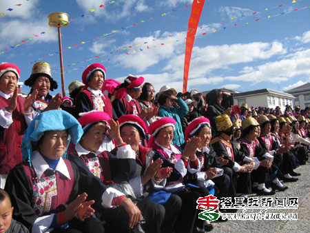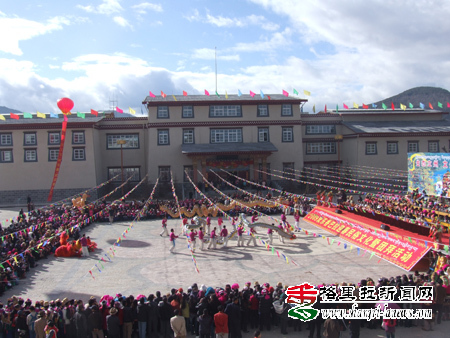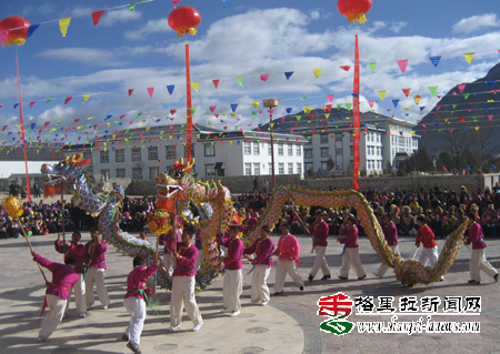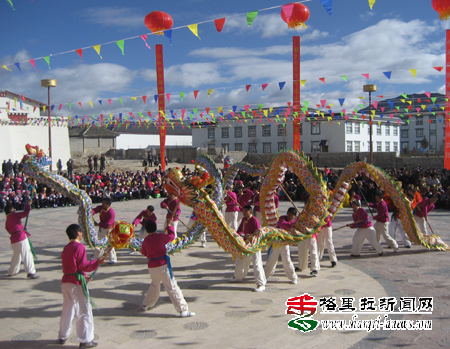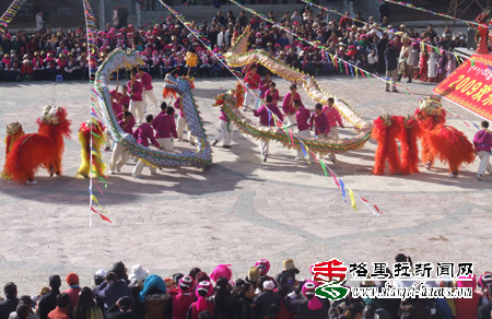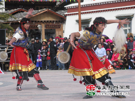 1月27日一早,独克宗古城月光广场上空彩旗飘扬,大龟山脚下祝福声声,龙腾狮跃。在一片瑞气祥和的气氛中,“欢乐香巴拉”2009年迎春民俗文化活动拉开了序幕。