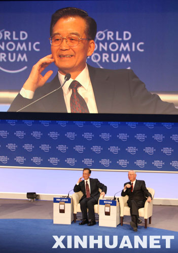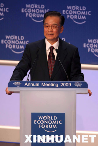 1月28日,中国国务院总理温家宝在瑞士达沃斯世界经济论坛2009年年会上发表特别致辞。新华社记者姚大伟摄