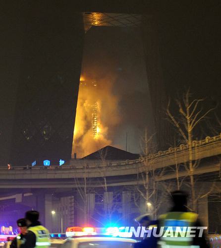 2月9日21时许,北京市京广桥附近的央视新大楼北配楼发生火灾。新华社记者李文摄 9日20时27分,中央电视台新址园区在建的附属文化中心大楼发生火灾。火灾致使6名消防人员和1名央视工作人员受伤。10日凌晨2时许,记者在现场看到起火大楼明火基本被扑灭。 北京市政府新闻办公室负责人表示,经有关部门初步调查,央视新址火灾系违规燃放烟花引起,具体的事故原因还在进一步调查中。 这位负责人说,经消防官兵奋力扑救,截至9日晚11时58分,火势已得到有效控制。文化中心主体结构没有受到严重影响。 北京市消防部门也证实,在扑救火灾的过程中,6名消防员因吸入过量烟气呼吸道受伤,被送到北京朝阳医院治疗,但没有生命危险。 北京朝阳医院表示,7名伤员均为吸入性休克,经过治疗不会对身体造成伤害。 10日凌晨,北京市消防局新闻处负责人告诉记者,目前起火大楼火灾已经完全得到控制,200名消防队员已进入大楼内进行地毯式的搜索,扑灭零星余火,防止死灰复燃。 在火灾现场附近工地的一名目击者告诉记者,9日晚8时半左右,起火大楼南侧有大量的烟花腾空而起,随即就看到大楼顶部出现火光。火势迅速蔓延,整个大楼都包围在火海之中。 据了解,北京市119指挥中心接到报警后,迅速调派16个中队、54辆消防车赶赴现场。北京市委、市政府启动了应急预案,现场设置应急指挥中心。消防、武警、民警也迅速赶赴现场,疏散周边群众,扑救大火。中共中央政治局委员、北京市委书记刘淇,中共中央政治局委员、中宣部部长刘云山,北京市委副书记、北京市市长郭金龙,中央电视台台长赵化勇等迅速赶赴现场指挥扑救。 火灾发生后,北京东三环和朝阳路交通受到影响,火灾现场近四平方公里的区域拉起警戒线。记者在现场看到,大量围观的群众在火灾现场聚集、议论、拍照。现场警戒人员在疏导人群,提醒围观人群尽量远离火灾现场。 |