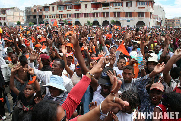 2月7日,在马达加斯加首都塔那那利佛市中心的“五·一三”广场,数万名反对派支持者举行集会,支持反对派领导人拉焦林纳。1月26日,因马政府关闭反对派私营电视台而引发塔那那利佛等地大规模骚乱,造成重大人员伤亡和财产损失。 新华社记者刘芳摄 (来源:新华网) |