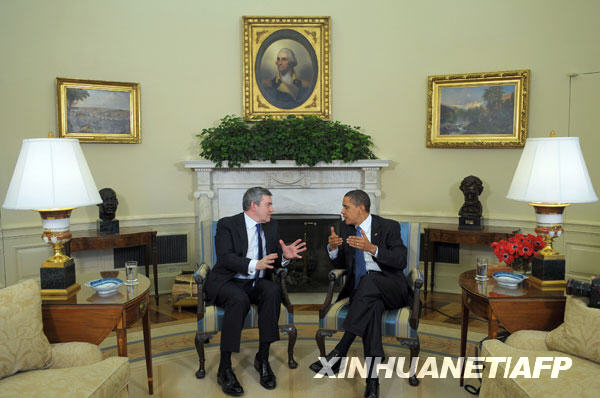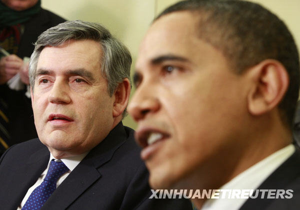 3月3日,在美国华盛顿白宫,美国总统奥巴马(右)和英国首相布朗举行会晤。布朗是奥巴马就任美国总统以来第一位造访白宫的欧洲国家领导人。新华社/路透