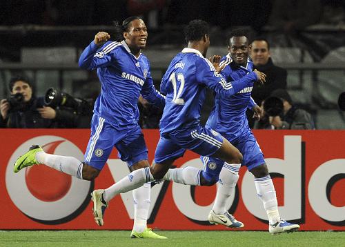 3月10,切尔西队球员德罗巴(右)庆祝进球。当日,在欧洲冠军联赛八分之一决赛第二回合比赛中,切尔西客场以2比2战平尤文图斯,从而以总比分3比2淘汰尤文图斯,晋级八强。 新华社/路透