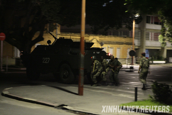 3月16日,马达加斯加武装部队接近位于塔那那利佛市的一处总统府。当晚,马达加斯加武装部队占领了位于塔那那利佛市中心的总统府,接管过程中发生冲突,总统府附近的中央银行大楼遭到炮击。 新华社/路透