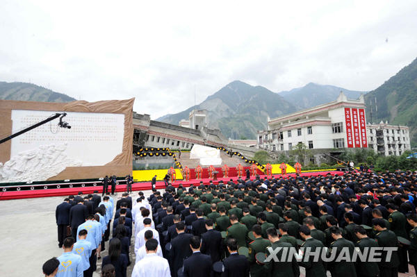 5月12日,纪念汶川特大地震一周年活动在四川省汶川县映秀镇隆重举行。中共中央总书记、国家主席、中央军委主席胡锦涛发表重要讲话。新华社记者樊如钧摄