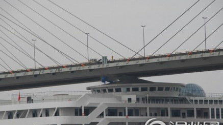 邮轮烟囱与温州大桥桥体碰擦 图片来自网友“I_PATAGONIA”微博