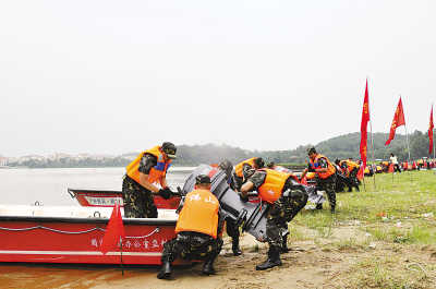 哪里有险情,哪里就有抢险队。随着汛期的来临,各流域也加强了防汛队伍的培训演练,确保关键时刻能够拉得出、顶得上。5月19日上午,淮河蚌埠闸枢纽工程的水面上,一场防汛抢险演练正在进行。省防汛机动抢险队水上抢险分队队员驾驶的6艘冲锋舟斜刺而来,一会儿人字形突进,一会儿呈S形穿越障碍,快速、准确、安全地驰抵预定目标,干净利落地完成了搜索、施救、打捞等演练项目。“进入汛期后,这样的演练我们经常进行,以此来锻炼队伍,提高应急反应和处置水平。”安徽省淮河河道管理局局长张峰说。据了解,目前安徽省124支防汛专业抢险队、2.2万名抢险突击队员严阵以待,全力以赴做好防汛准备。