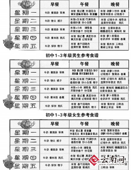 小学1~3年级学生参考食谱 李群 制表 云南省卫生厅近日出台的《云南省农村义务教育中小学生参考食谱》引起不少家长关注,这是根据儿童青少年生长发育的特点及营养需求,制订的农村义务教育中小学生一周参考食谱,为义务教育阶段各学校食堂配餐或学生家庭配餐提供建议和参考依据。记者昨日从省卫生厅了解到,这份《食谱》不仅适用于农村中小学,也适用于全省中小学生的学校和家庭饮食。 ·抽样调查· 营养不良检出率较高 在制订《食谱》前,我省在12个县(市、区)抽样选取7200名农村义务教育学生开展农村义务教育学生营养监测评估基线调查,为云南省实施农村义务教育学生营养改善计划提供干预前的基础资料和基线数据。调查结果显示,农村中小学学生身高体重偏低,营养不良检出率较高,存在贫血现象,身体素质水平与周边省份有一定差距,有部分超重肥胖的现象。问卷调查提示学生膳食习惯、膳食结构还需调整,学生营养与食品安全健康教育需要进一步加强。 根据调查结果,省卫生厅组织了食品卫生、学校卫生、营养、检验等领域的专家制订了《食谱》。不过,《食谱》只是针对农村义务教育中小学生营养改善的一部分计划,预计今年我省还会出台相关评估方案指导日常的监测评估。今后将在全省129个县(市、区),省级16个点监测展开评估,以监测农村义务中小学生营养状况与体质情况,为下一步农村义务教育中小学生营养改善提供参考。 ·4份食谱· 照单点菜满足学生营养 专家介绍,根据儿童青少年生长发育的特点及营养需求,应在一般人群膳食指南的基础上强调4个内容:三餐定时定量,保证吃好早餐,避免盲目节食;吃富含铁和维生素C的食物;每天进行充足的户外运动;不抽烟,不饮酒。 在《食谱》中,提到义务教育阶段的中小学生,由于年龄、性别、生长发育的差异,每日对营养的需求存在一定的差异性,因此要求各地根据不同的年龄段学生的特点,指导学校制订科学合理的营养膳食食谱。《食谱》将小学学生膳食食谱按年龄段分为小学1~3年级学生膳食食谱和4~6年级学生参考食谱;将初中学生膳食食谱按性别分为初中1~3年级男生参考食谱和初中1~3年级女生参考食谱。 ·同类食物· 多种口味互换营养没变 此次制订的《食谱》基本囊括了青少年生长发育所需要的谷类及薯类、大豆类、新鲜蔬菜和水果、肉类、乳类和蛋类等,对周一至周五的早、中、晚餐菜谱作了详细的安排,并给出了每道菜的用料和用量。食谱所用的原料均为农村地区常见且价格低廉的食物,同时,为了使饮食丰富多彩,在食谱的应用部分详细介绍了食物互换的原则和方法。针对儿童青少年生长发育的特点,增加富含钙、铁、维生素C的食物;同时,注意粗细搭配,增加杂粮摄入。 每天吃一样的菜肯定会腻味,因此专家表示同一类的各种食物所含营养成分往往大体上相似,在膳食中可以互相替换。在实际工作中,应把营养与美味结合起来,按照同类互换、多种多样的原则调配中小学生的一日三餐。比如大米可以与相当量的面粉、杂粮、馒头、面条、烙饼等互换,大豆可与相当量的豆制品(豆腐丝、豆腐干、豆浆等)互换等。在牧区可适当提高奶类摄入,农村山区,可充分利用山羊奶以及花生、瓜子、核桃、榛子等。而在不得已时(如地区经济或物产限制),可暂用豆类代替乳类、肉类,或用蛋类来代替鱼、肉,甚至用花生、瓜子、核桃等坚果代替大豆或鱼、肉、奶等动物性食物。 ·限制零食· 每天吃零食不超过3次 不少家长一直很困惑,究竟该不该给孩子吃零食?专家表示,儿童青少年在不影响正餐的前提下,可以合理选择、适时适度消费的食用零食,或者在必要时限制食用零食。 6~12岁的儿童零食消费要特别注意,零食应是合理膳食的组成部分,不要仅从口味和喜好选择零食。选择新鲜、易消化的零食,多选用奶类、水果和蔬菜类的食物。学习、了解不同零食的营养特点,不要盲目跟随广告选择零食。同时,吃零食的时间不要离正餐太近,每天吃零食不超过3次。每次吃零食应适量,避免在玩耍时吃零食。少吃油炸、含糖量过多、过咸的零食。养成多喝白开水的习惯,少喝含糖饮料。还要注意饮食卫生及口腔清洁,少吃街头食品。(云南网) |