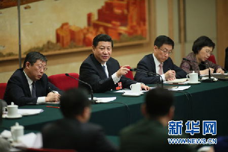 3月5日,中共中央总书记、中共中央军委主席习近平参加十二届全国人大一次会议上海代表团的审议。 中共中央总书记、中共中央军委主席习近平5日下午在参加他所在的十二届全国人大一次会议上海代表团审议时强调,要高举中国特色社会主义伟大旗帜,全面贯彻落实党的十八大精神,坚持以邓小平理论、“三个代表”重要思想、科学发展观为指导,把握好稳中求进的工作总基调,坚定不移深化改革开放,更加自觉地把工作着力点放到加大创新驱动力度上来,不断为创新发展注入新的动力和活力。 上海代表团气氛热烈、发言踊跃。杨雄、应勇、徐小平、徐麟、曹可凡、黄迪南、樊芸、朱之文等8位代表分别就建设法治国家、加快浦东综合配套改革试点、推进产业结构转型升级、建设高技能人才基地、增强城市文化竞争力等问题发表意见。习近平边听边记,并不时同代表就有关问题进行探讨和交流。 在认真听取代表发言后,习近平作了重要讲话。他首先表示完全赞成政府工作报告,充分肯定5年来全国以及上海改革开放和社会主义现代化建设取得的成就,强调总结过去的5年,我们用极不平凡的努力、极不平凡的成就度过了极不平凡的岁月。他希望上海的同志立足全局、突出重点,深入探索中国特色、时代特征、上海特点的科学发展之路,当好全国改革开放排头兵、科学发展先行者。 习近平强调,我国经济已由较长时期的两位数增长进入个位数增长阶段。在这个阶段,要突破自身发展瓶颈、解决深层次矛盾和问题,根本出路就在于创新,关键要靠科技力量。要坚持自主创新、重点跨越、支撑发展、引领未来的方针,以全球视野谋划和推动创新,改善人才发展环境,努力实现优势领域、关键技术的重大突破,尽快形成一批带动产业发展的核心技术。要加快经济结构战略性调整,坚持三二一产业融合发展,整体提高先进制造业水平。 习近平强调,我国改革已经进入攻坚期和深水区,进一步深化改革,必须坚定信心、凝聚共识、统筹谋划、协同推进。要勇于冲破思想观念的障碍和利益固化的藩篱,敢于啃硬骨头,敢于涉险滩,更加尊重市场规律,更好发挥政府作用,以开放的最大优势谋求更大发展空间。 习近平强调,要落实好中央各项惠民政策,更多关注困难群众,让群众切实感受到党和政府的关怀和温暖。各级干部要转变工作作风,牢固树立群众观点,保持奋发有为的精神状态,发扬钉钉子的精神,把转变工作作风和解决群众反映强烈的突出问题结合起来,把群众工作做实、做深、做细,确保群众安居乐业,确保社会和谐稳定。 中共中央政治局委员、上海市委书记韩正等参加审议。(新华网) |