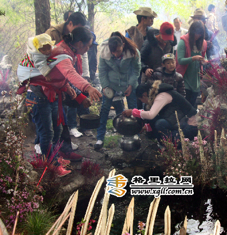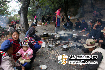 二月八当天,当地群众准备丰富的食物到白水台野炊。 二月八是香格里拉县三坝乡纳西族的传统节日之一,每年农历二月初八当地群众在白水台举行为期一天的民俗文化活动。今年二月八当天,各族群众和慕名前来的游客身着节日盛装,在白水台边跳舞、对歌,丰富多彩的民俗文化活动吸引八方来客。 (和金莲 陈义 摄影报道) |