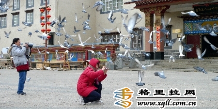 游客在独克宗古城月光广场拍照。3月以来,来独克宗古城旅游的游客逐渐增多,据广场摆摊的摊主介绍,这几天来此旅游的人每天保持在千人以上。(余富全 摄影报道)