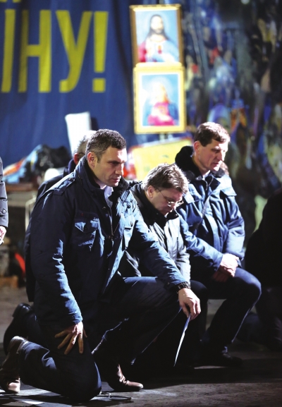 22日,乌克兰基辅,独立广场上仍然聚集着许多不愿散去的示威者。图/CFP