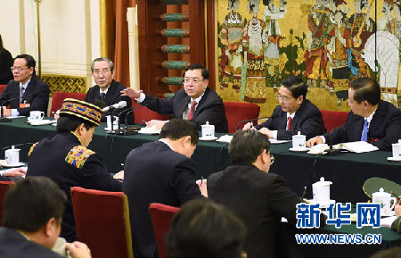 3月9日,中共中央政治局常委、全国人大常委会委员长张德江参加十二届全国人大二次会议广西代表团的审议。 张德江在广西代表团参加审议。在听取彭清华、陈武、蒋锦坤等代表发言后,张德江说,向人民代表大会报告工作,是常委会对代表大会负责、接受代表和人民监督的应有之义。我们要认真研究代表提出的意见和建议,有的可以在修改报告时采纳,有的要在今后的工作中加以考虑。他说,国家治理体系现代化的重要任务是坚持依法治国,国家治理能力现代化的重要任务是坚持依法办事。推进国家治理体系和治理能力现代化,就要充分发挥法治的引领和推动作用,保障国家各项事业、各项工作在法治轨道上运行。人大及其常委会在全面推进依法治国中担负重要职责,要继续把坚持依法治国、维护宪法和法律权威作为重要任务。要加强改进人大立法工作,积极推进科学立法、民主立法,着力提高立法质量,不断完善法律体系。要扎实做好人大监督工作,敢于监督、善于监督,坚决纠正违反宪法和法律的行为。人大代表要模范遵守宪法和法律,依法执行代表职务,密切联系人民群众,充分发挥国家权力机关在依法治国中的重要作用。 |