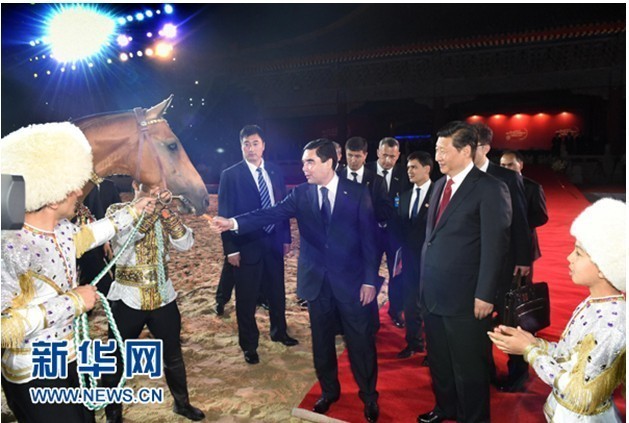 新华网北京5月12日电(记者钱彤)国家主席习近平12日晚与土库曼斯坦总统别尔德穆哈梅多夫共同出席在人民大会堂举行的世界汗血马协会特别大会暨中国马文化节主席会议。 习近平代表中国政府和人民,对大会的举行表示祝贺。习近平表示,汗血马是享誉世界的优良马种,是土库曼斯坦民族的骄傲和荣耀。中国人民喜爱汗血马,将之誉为“天马”。早在2000多年前,天马就穿越古老的丝绸之路,不远万里来到中国。中土建交以来,土方先后两次将汗血马作为国礼赠送中方,增进了两国人民感情。汗血马已经成为中土友谊的使者和两国人民世代友好的见证。 习近平指出,马在中华文化中具有重要地位,中国的马文化源远流长。建设国家需要万马奔腾的气势,推动发展需要快马加鞭的劲头,开拓创新需要一马当先的勇气。马是奋斗不止、自强不息的象征,马是吃苦耐劳、勇往直前的代表。今年是中国农历马年。中国人民正在策马扬鞭、马不停蹄,为实现中华民族伟大复兴的中国梦而努力奋斗。 别尔德穆哈梅多夫在致辞中表示,汗血马是土库曼斯坦的国宝,在土库曼斯坦历史中占有独特地位,也在悠久的土中交往史中留下佳话,深受中国人民喜爱。相信本次在中国举办的会议及有关活动能够进一步增进两国人民相互了解和友谊。 会议开始前,习近平和别尔德穆哈梅多夫共同会见了与会各国代表。 当晚,习近平和别尔德穆哈梅多夫一同来到劳动人民文化宫,出席世界汗血马协会特别大会暨中国马文化节开幕式。 太庙前,《天马飞翔》主题演出拉开序幕。古老的丝绸之路沿途风土人情投射在场地中央巨大的圆形纱幔上,如梦如幻。天马降临、金色旅程、绿洲诗人、辉煌时刻。整场演出围绕一个土库曼斯坦男孩儿和他的汗血马爱驹的丝路之旅,述往谈今,串联起漫漫丝路、商旅驼铃、飞天壁画、挺拔胡杨,串联起劈山沥水的文化使者张骞和土库曼斯坦伟大诗人马赫图姆库,串联起丝路起点中国古都长安和丝路古镇梅尔夫古堡。汗血马跨越两千年,踏过万水千山,从阿姆河岸来到燕山脚下的紫禁城。中土友好交往历久弥新、蓬勃发展。 别尔德穆哈梅多夫致辞并邀请习近平宣布世界汗血马协会特别大会暨中国马文化节开幕。 习近平接受了别尔德穆哈梅多夫代表土方赠予中方的一匹汗血马。掌声、金铃声、欢呼声响彻夜空。 中土两国艺术家联袂表演,舞姿翩跹,骕骦骠勇;乐声激荡,汗血嘶鸣。欢歌劲舞,颂扬驰而不息的龙马精神,再续中土友谊华彩篇章。 国务委员杨洁篪等出席上述活动。 世界汗血马协会2011年在土库曼斯坦成立,别尔德穆哈梅多夫总统任主席。协会共有成员国、观察员国60个,中国马业协会是首批会员。协会今年5月12日至14日在华举办特别大会暨中国马文化节,主要活动有主席会议,开、闭幕式,北京国际马展,中国马文化艺术展,主题论坛等。(新华网)