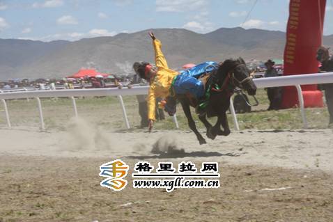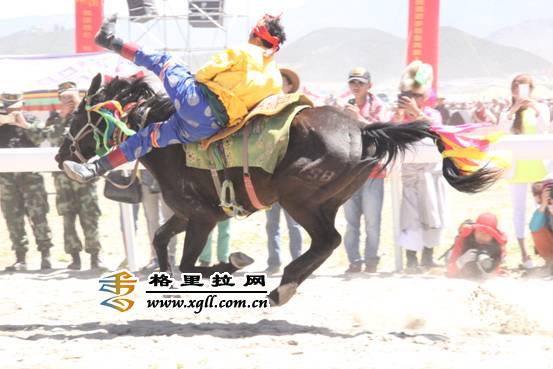 赛马节最为精彩的节目莫过于骑手们精彩的马技表演,给广大游客和观众们再现了香格里拉古老的马背文化。 在马技表演现场,当“呀啦嗦”民间马术演艺中心的骑手们在飞奔的马背上,双脚离蹬双手高举,随着奔跑的节奏调节自身漂浮于空中的身体时;在充满颠簸和力量勃发的马背上完成高难度的倒立动作时,让人惊心动魄,场内场外欢呼声,赞叹声不绝,骑手们充分展示了力与美以抗衡而融合的姿态。 马背横撑、倒挂金钩、双马单人骑等高难度的精彩表演更是让观众目不暇接…… “呀啦嗦”民间马术演艺中心是由崔建国(鲁茸七林)创办的,这个成立于2006年的马场,在云南香格里拉颇有特色和名气,这里不仅有传统的藏土马,也有从俄罗斯和英国引进的昂贵纯种马。 热情似火的观众