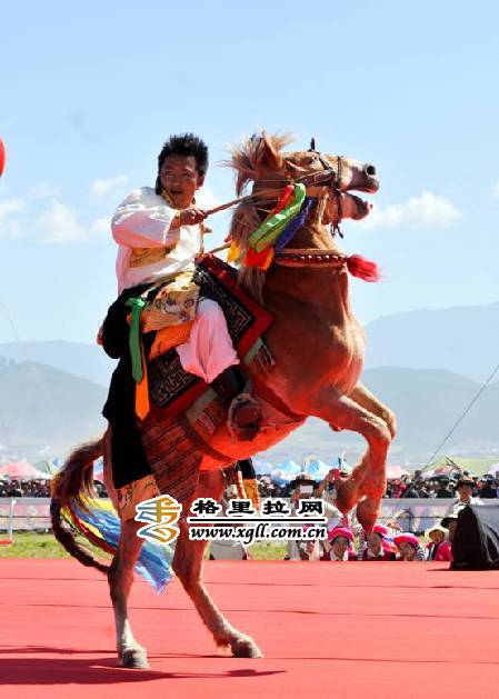 本土知名歌手拉茸西洛骑着赛马上台演唱。