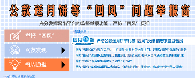 中央纪委监察部网站开通公款送月饼等"四风"问题举报窗 周周点名道姓通报曝光