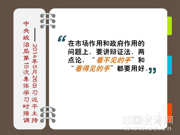 使市场在资源配置中起决定性作用、更好发挥政府作用,既是一个重大理论命题,又是一个重大实践命题。在市场作用和政府作用的问题上,要讲辩证法、两点论,“看不见的手”和“看得见的手”都要用好,努力形成市场作用和政府作用有机统一、相互补充、相互协调、相互促进的格局,推动经济社会持续健康发展。 ——2014年5月26日习近平主持中央政治局第15次集体学习时强调 解读:政府与市场各司其职 一个发展成功的国家必然是以市场经济为基础,再加上一个有为的政府。在传统市场经济体系下,政府和市场分别扮演着看得见与看不见的手,前者主要提供发展环境、公共产品与服务,后者则主要进行资源配置。处理好政府和市场的关系,就是要使二者各司其职、各负其责,让“两只手”形成合力。 倘若政府管理职能太大,便会在无形中压制市场的活力,而通过减少管制和审批,“小政府”则更会提升社会效率。调整政府与市场的关系,实际上是将政府权力向社会让渡的放权运动,这就不可避免地触及此前过大管理权之下的部门利益。在少数地方,此类部门利益甚至通过部门立法方式固化,因此变得愈加不可撼动。恰缘于此,也可预见此种放权改革将“触及灵魂”。从这个角度来说,重塑政府与市场的关系尤其需要顶层的制度纠偏,以及大力推进的改革勇气。 改革未有穷期,中国还在路上。政府与市场的关系是经济体制改革的核心问题,让经济体制激发更大的市场活力,进而惠及到所有国民,在过往的改革中我们已多次践行,此次不会例外。 网友热议: @徐开翟律师:赞赏习大大上台后的各项正确举措,民主建设、法制建设和市场经济建设是国家建设的三大基石。 @石白菜:政府职能从管理向服务的转变。 @秦晓:如果要让市场起决定作用,前提应是一个好的市场,而不是扭曲的市场。 @陈志武:只要权力制衡机制运作不好、监督问责缺失,政府很难从市场退出。权力只要不受制约就会自我膨胀,这是权力天性,不因人种肤色或文化而不同。比如“让市场在资源配置中起决定性作用”很好,但必须有相应体制支持,因为万一权力硬压制市场、要决定资源配置,被挤压的市场找谁去说理? @理论热点面对面:让市场这只手得到完全施展,让政府这只手收放自如,政府与市场关系最终达到“琴瑟和鸣”的和谐之境。(中国经济网 马璐) |