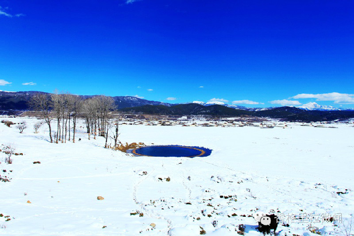冬天雪后的月亮湖。那一湾蓝色,宛如镶嵌在地球上的眼睛。