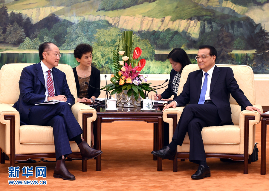 新华网北京7月16日电(记者侯丽军)国务院总理李克强16日下午在人民大会堂会见世界银行行长金墉。 李克强介绍了当前中国经济形势,他指出,今年以来,面对国内外复杂形势,中国经济稳中向好,运行处于合理区间。一些主要经济指标近几个月增速回升,城镇新增就业势头良好,内需进一步扩大,产业结构继续优化,居民收入增长与经济发展同步。这表明,我们采取的定向调控、结构性改革等措施的效应正在逐步显现。 李克强表示,中国作为一个拥有13亿人口的最大发展中国家,经济拥有巨大的韧性、潜力和回旋余地。我们将坚持宏观政策的正确取向,引领经济新常态,坚定不移地稳增长、促改革、调结构、惠民生,特别是通过深化简政放权、放管结合、优化服务等重点领域改革激发市场活力,推动大众创业、万众创新,把亿万人的智慧和创造力调动出来。我们有条件、有能力妥善应对各种风险挑战,使市场有稳定预期,保持健康发展,促进中国经济长期中高速增长,迈向中高端水平。 李克强积极评价世界银行和世界卫生组织同中方开展医改联合研究取得的成果,强调指出,医改是关乎广大民众健康福祉、经济增长和就业的重大民生、民心工程。希望三方继续携手合作,将国际经验同中国实际有机结合,为推动建立具有中国特色、适合中国国情的医药卫生体制作出不懈努力。 李克强表示,中方愿继续丰富和发展同世界银行的伙伴关系,共同抵御世界经济下行压力,促进全球经济强劲、可持续、平衡增长。 金墉表示,中国经济保持增长是对世界经济的重要贡献。世行赞赏中国政府推进改革的决心和应对挑战的积极举措,愿继续在中国城镇化和医改等领域同中方加强合作,相信中国能够建立起优质、统筹的医药卫生体系,并为其他国家的相关改革提供新路径。