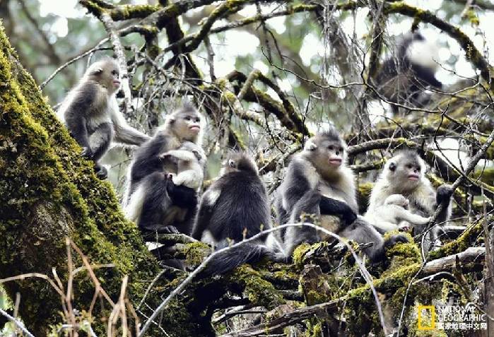 在云南省白马雪山国家级自然保护区深处,维西县塔城保护站,栖息着一群滇金丝猴。它们是中国特有物种。继大熊猫后,被列为“国宝”。图为白马雪山深处的猴群部落。