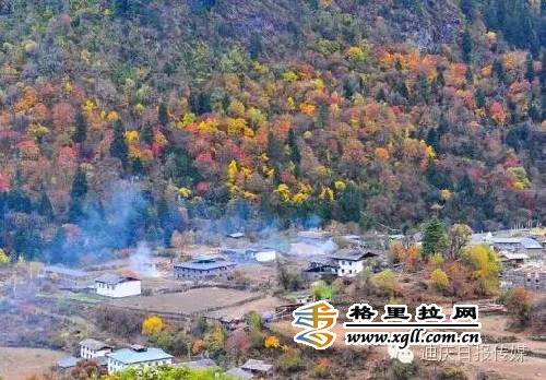 绚烂的彩林将雨崩下村,点缀成色彩斑澜的童话世界。